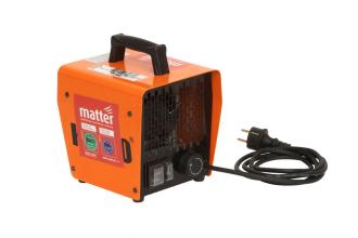 Heizleistung 5,0 kW, 400 V Anschluss, stufenlos einstellbarer Thermostat, Überhitzungsschutz.