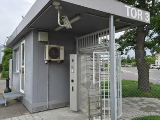 Die Pförtnerhäuser / Pförtnercontainer können mit Durchgängen mit Drehkreuzen und Schrankenanlagen sowie Videoüberwachung und Sprechanlagen ergänzt werden.