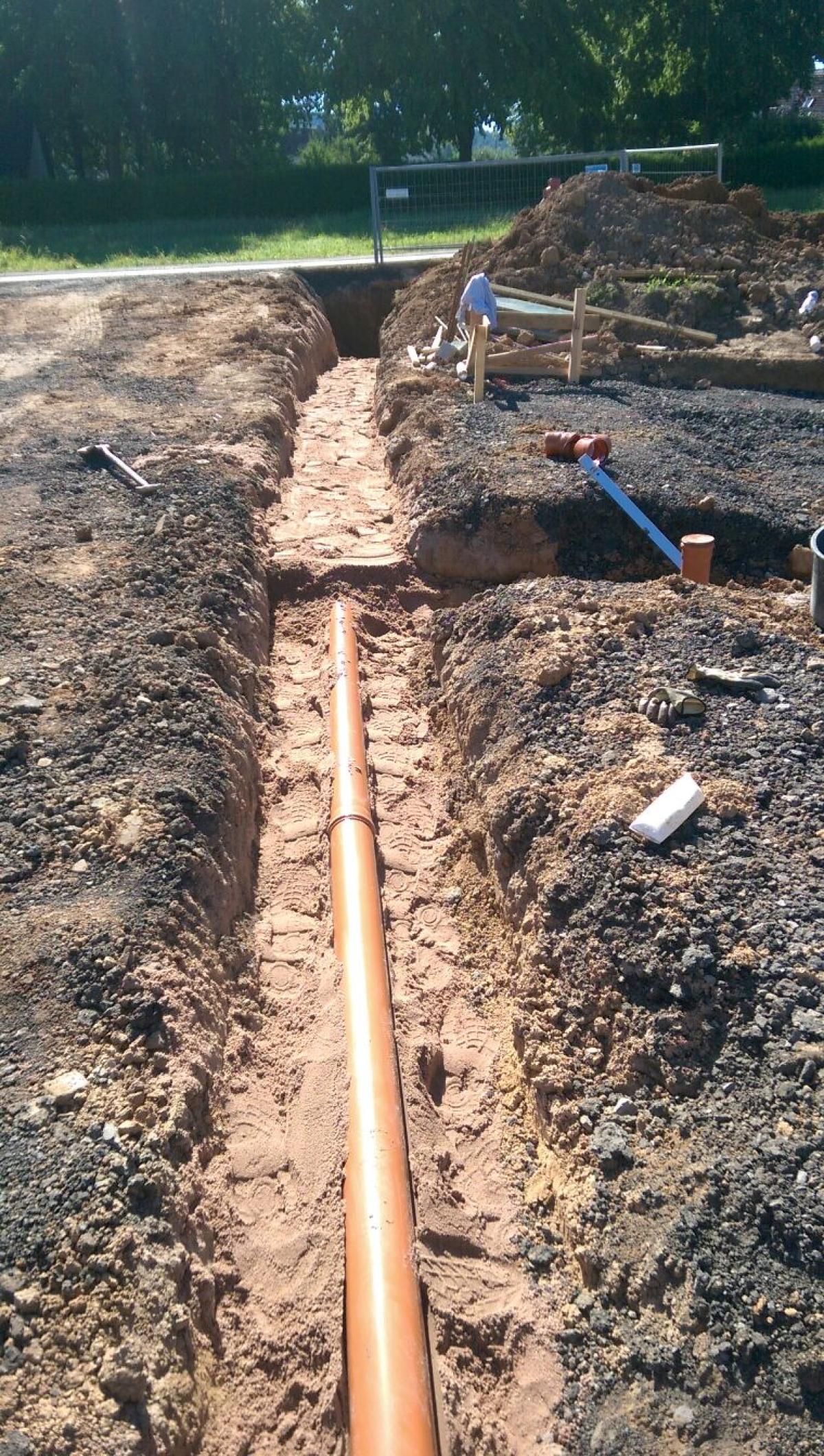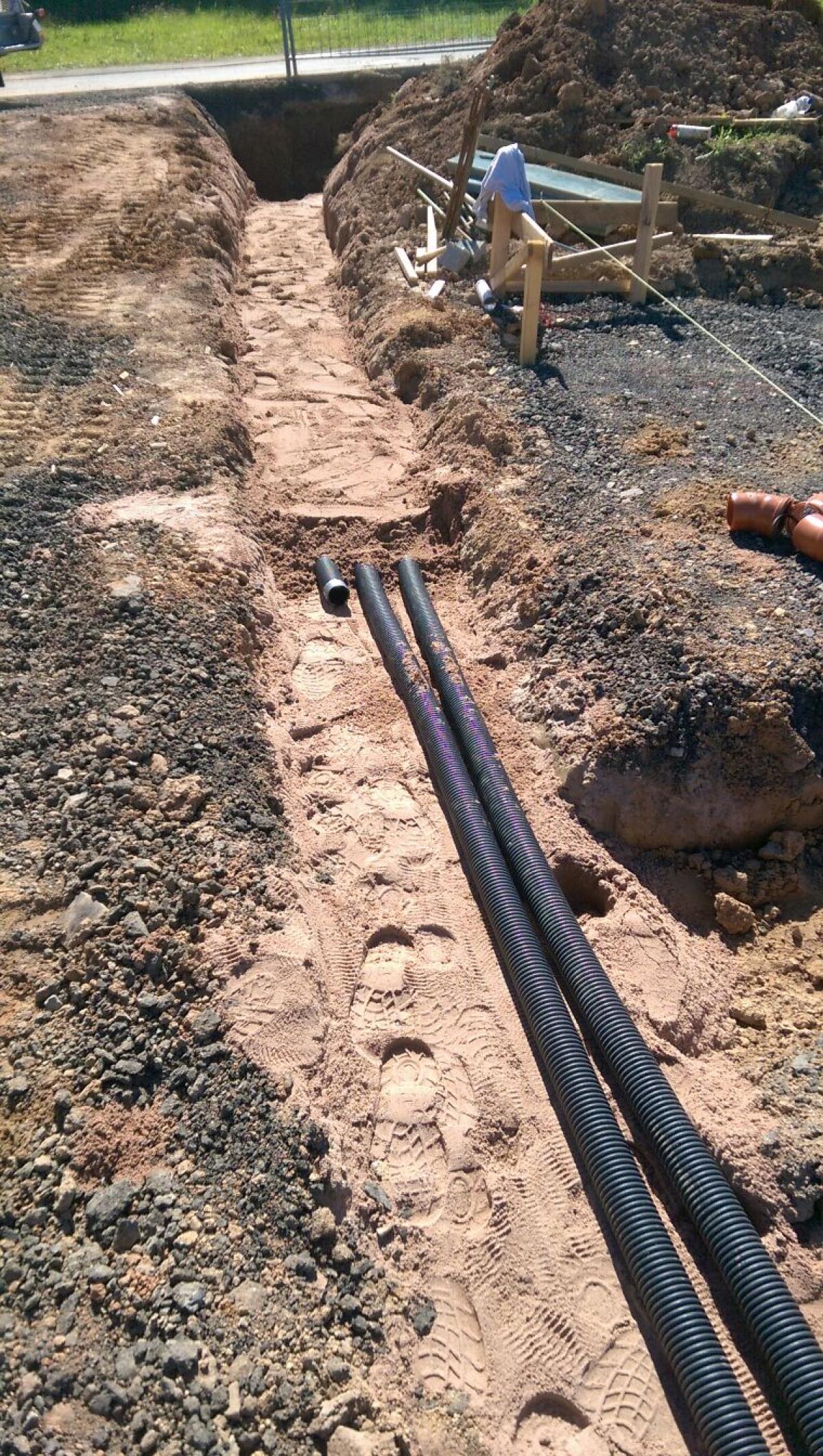 - *Grabenaushub*: Aushub von Gräben für Wasser-, Gas- und Stromleitungen.