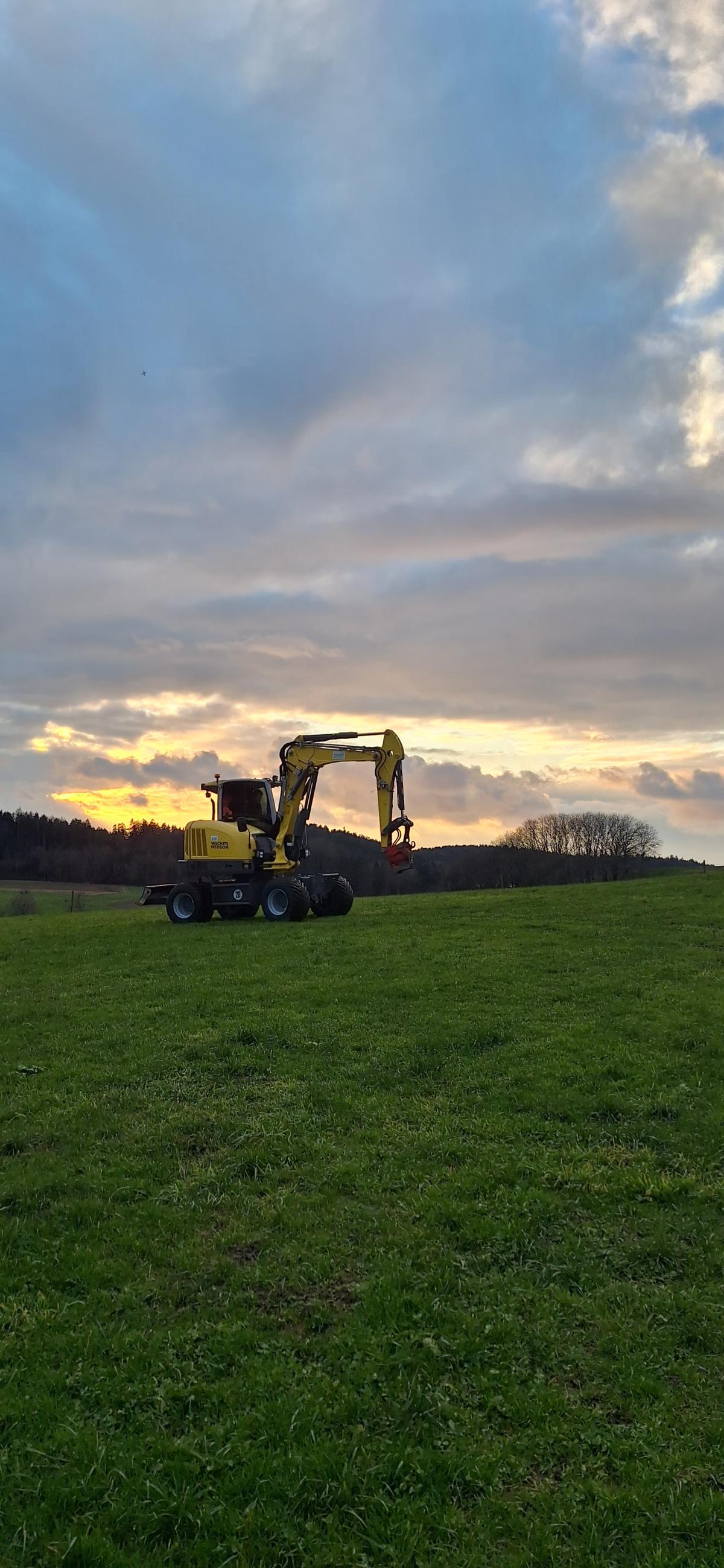 Durch die Grünlandbereifung an unserem Mobilbagger ist auch ein nasses Gelände kein Problem.