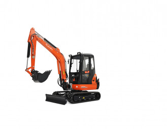 Der Kompaktbagger KATO 35 N3 mit Komfortkabine hat eine Leistung von 27,3 PS bei einem Gewicht von 3460 kg. Er ist ausgestattet mit 300 mm breiten Gummiketten. Der Minibagger ist 1550 mm breit und 2420 mm hoch. Die Ausschütthöhe liegt bei 3530 mm und die Grabtiefe bei 3150 mm. (oder KUBOTA KX 101)