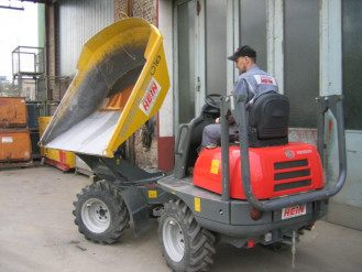 Dumper Hinowa HS701, Gewicht 540 kg, Nutzlast 700 kg, Muldeninhalt 0,34 cbm, Breite 758 mm, Fahrgeschwindigkeit 3.3 km/h