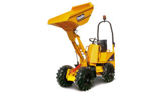 handgeführter Minidumper mit Kippmechanismus, für Nutzlasten bis 300 kg Zweirad- oder Allradbetrieb möglich hohe Steigfähigkeit (bis zu einer Hangneigung von 38°, 20° bei Vollbeladung) ausgestattet mit vier Vorwärts-, einem Rückwärtsgang & Scheibenbremsen