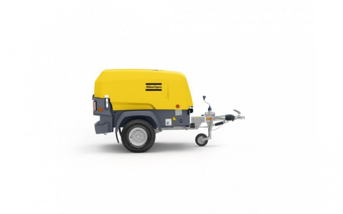 Atlas Copco Kompressor mit Pkw-Kupplung und Zugöse.