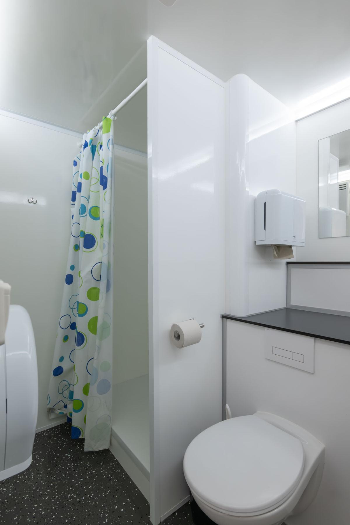 Badmobil – Die flexible Sanitärlösung für jeden Einsatz Unser Badmobil bietet Ihnen eine komfortable und praktische Komplettlösung für mobile Sanitärbedürfnisse. Ob auf Baustellen, bei Veranstaltungen, während Renovierungen oder als temporäres Badezimmer – dieses kompakte Bad vereint alle wichtigen Funktionen in einer durchdachten Einheit. Im Inneren erwartet Sie eine vollwertige Ausstattung: Ein WC, eine Dusche mit integriertem Boiler für warmes Wasser sowie ein Waschbecken sorgen für den gewohnten Badezimmerkomfort – auch unterwegs oder an Orten ohne feste Sanitäranlagen. Die integrierte kleine Sitzbank bietet eine praktische Ablagefläche für Kleidung, Handtücher oder Pflegeprodukte. Für zusätzlichen Komfort sorgen mehrere Kleiderhaken, an denen Kleidung und Handtücher ordentlich aufgehängt werden können. Durch die kompakte Bauweise bleibt das Badmobil platzsparend, ohne auf Funktionalität zu verzichten. Ausstattung im Überblick