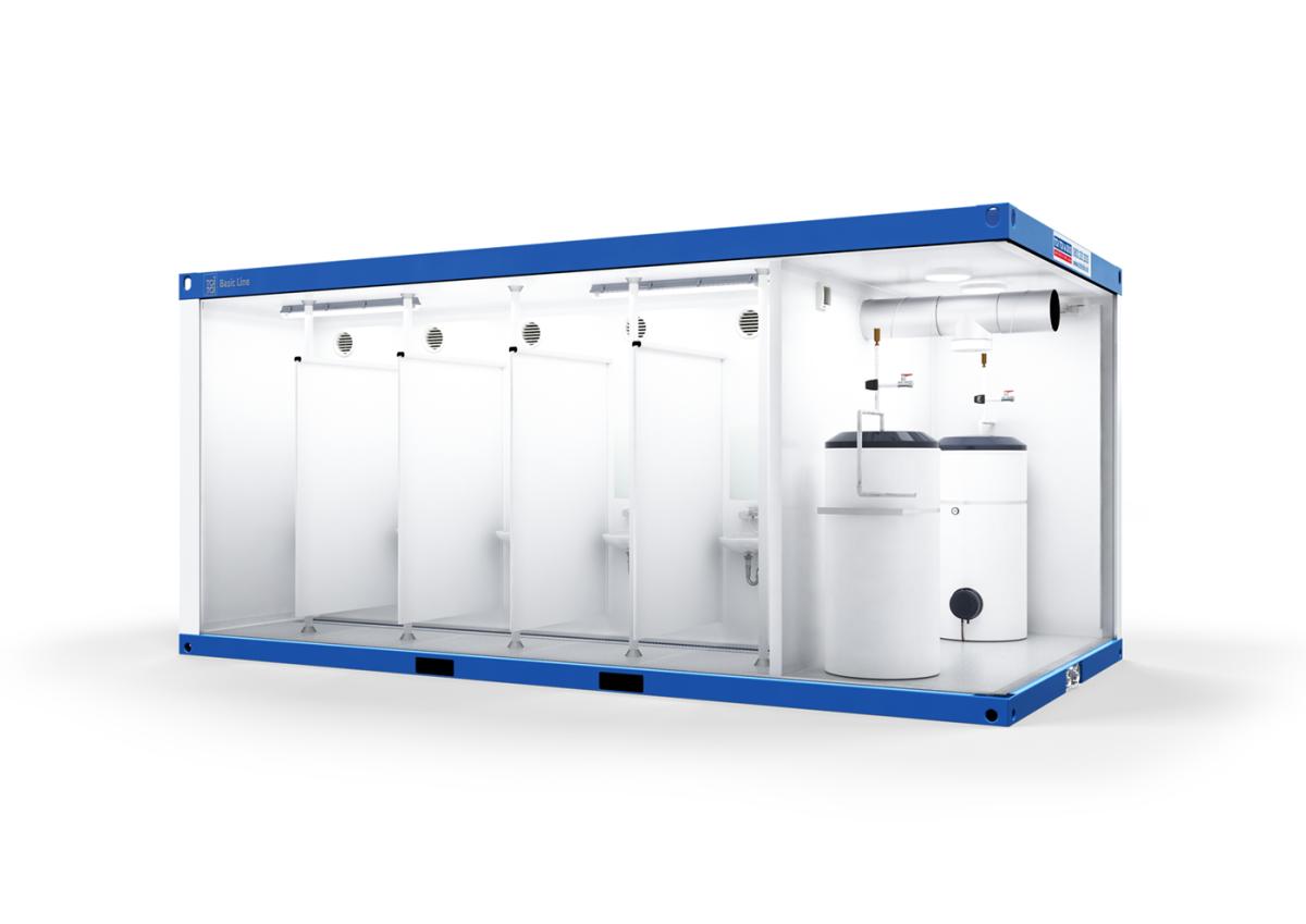 Mit dem Dusch-Container stellen Sie Damen wie Herren komfortable Wasch- und Duschgelegenheiten zur Verfügung. Dabei garantieren zwei moderne, leistungsfähige 400-Liter-Warmwasser-Speicher gleichbleibend warmes Wasser – auch bei vielen Nutzern.