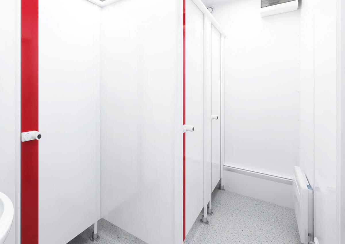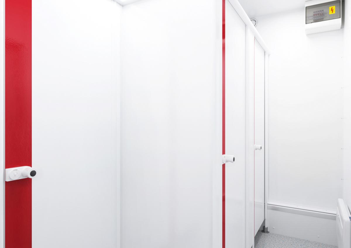 Der WC-Container D/H aus der Basic Line ist ein echtes Raumwunder. Die Grundfläche von rund 15 Quadratmetern wird höchst effizient genutzt. Durch seine perfekte Aufteilung kann der Sanitärcontainer von acht Personen gleichzeitig genutzt werden.