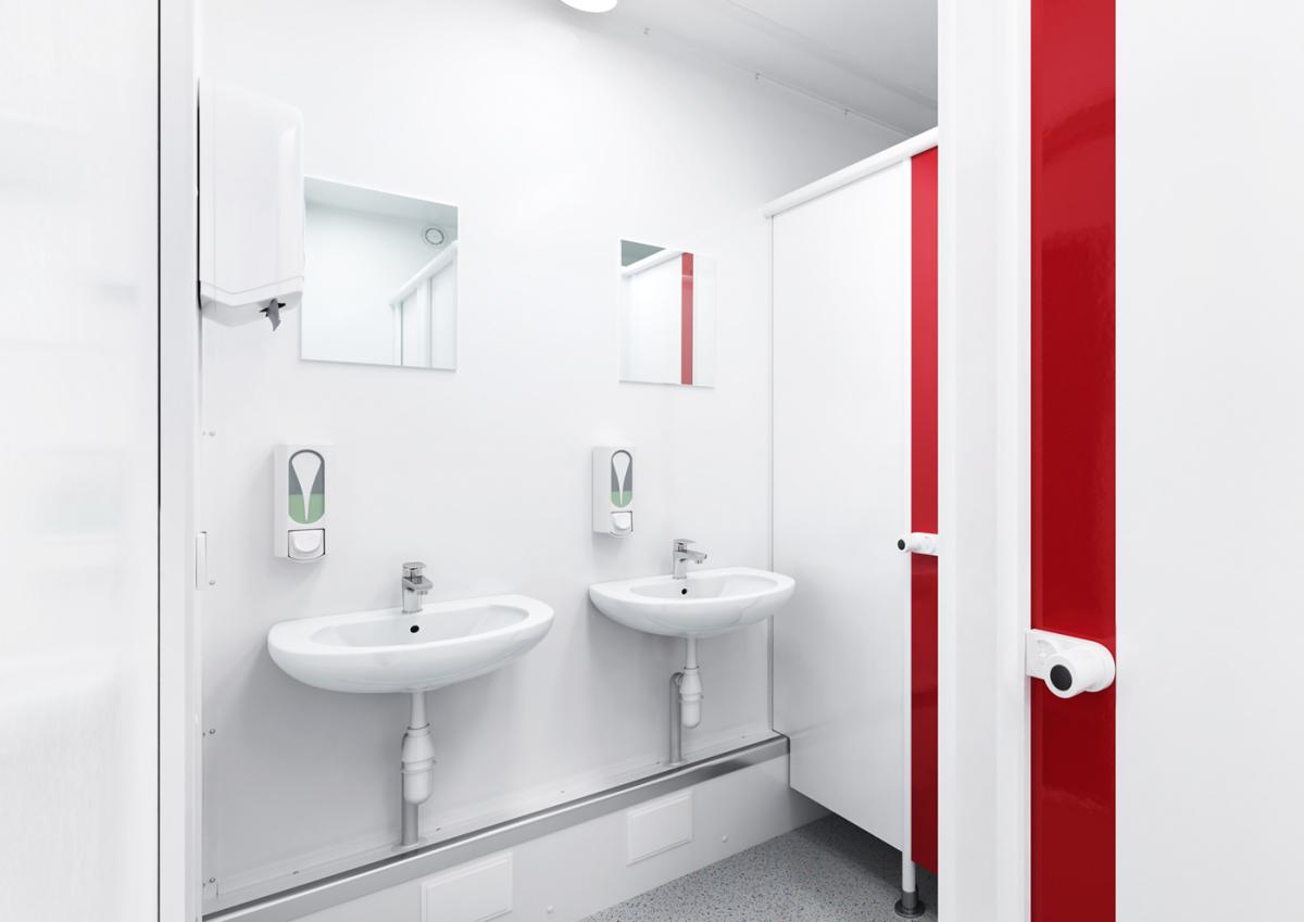 Der WC-Container D/H aus der Basic Line ist ein echtes Raumwunder. Die Grundfläche von rund 15 Quadratmetern wird höchst effizient genutzt. Durch seine perfekte Aufteilung kann der Sanitärcontainer von acht Personen gleichzeitig genutzt werden.