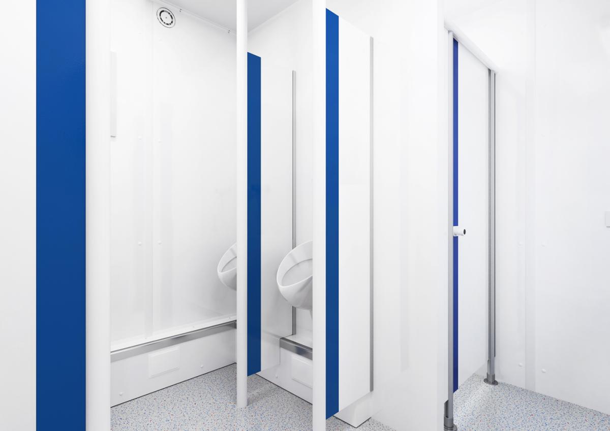 Der WC-Container D/H aus der Basic Line ist ein echtes Raumwunder. Die Grundfläche von rund 15 Quadratmetern wird höchst effizient genutzt. Durch seine perfekte Aufteilung kann der Sanitärcontainer von acht Personen gleichzeitig genutzt werden.