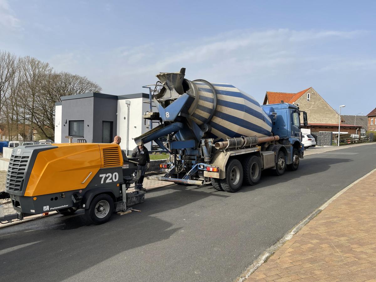 Wir verleihen und liefern unsere Betonpumpe bundesweit termingerecht an Ihre Baustelle. Unser Maschinist bedient die Pumpe während dem gesamten Betrieb. Sie und Ihre Personal übernehmen das komplette Handling, die Verfüllung und Verarbeitung des Betons. (siehe AGB)