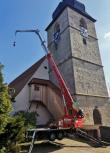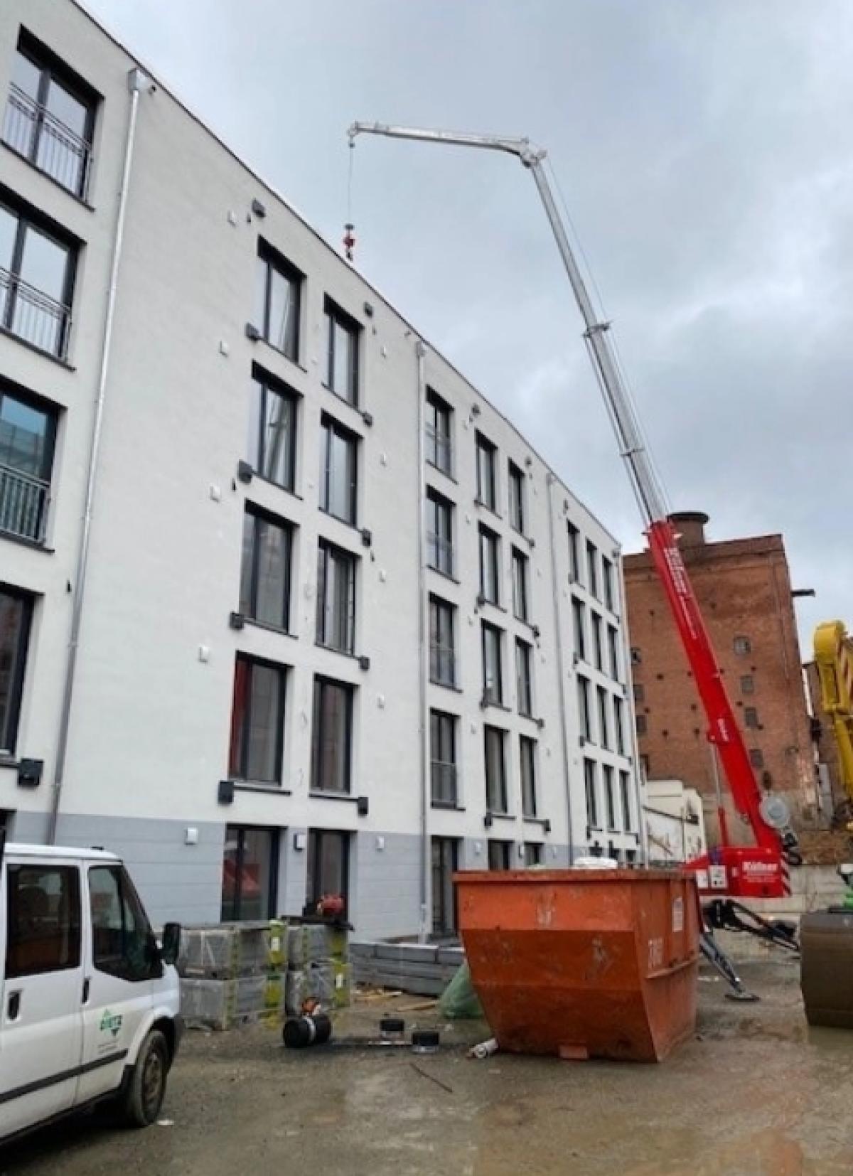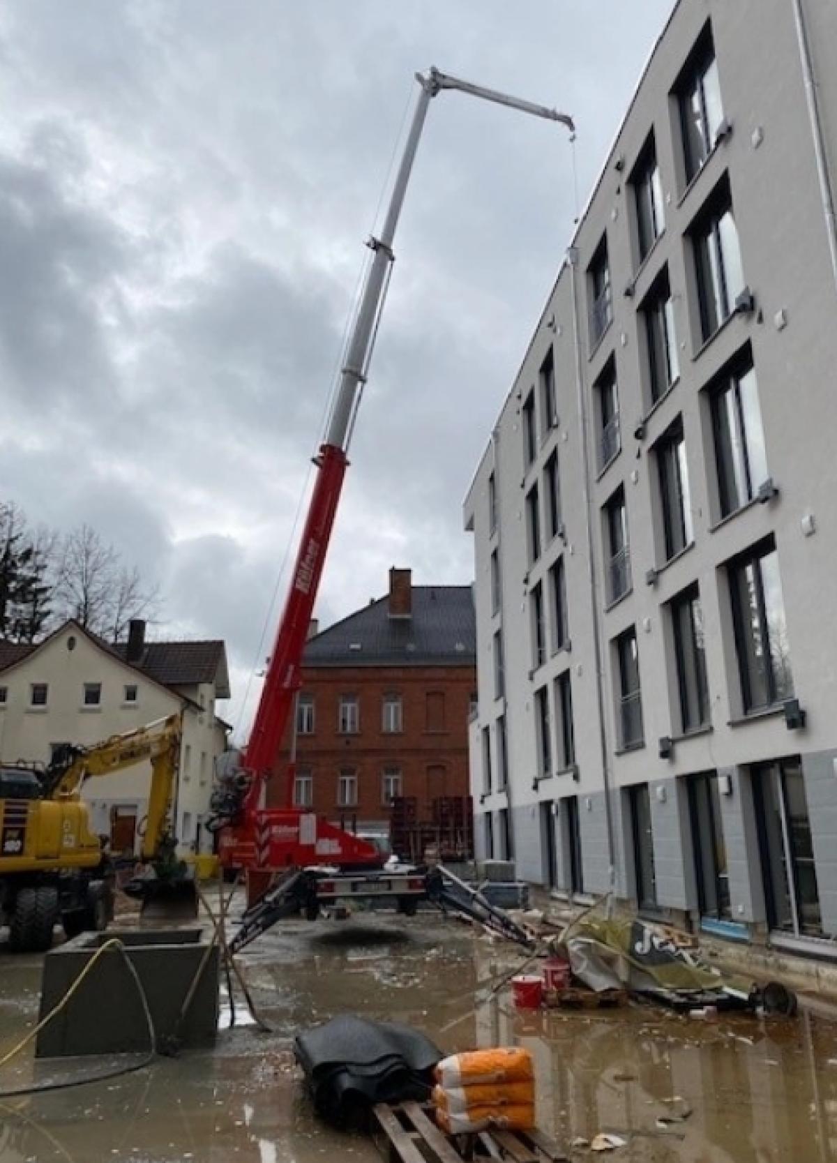 Böcker AHK 30 KS Anhängerkran Tragfähigkeit 1.500 kg, Hakenhöhe 30,00 mtr, Reichweite (100 kg) 25 mtr, Reichweite (250 kg) 21 mtr, Reichweite (500 kg)14 mtr, Höhe 2,55 mtr, Breite 2,30 mtr, Länge mit/ohne Deichsel 9,60 / 7,70 mtr, Bodenfreiheit 0,23 mtr, Radstand 0,75 mtr, Stützweite breit 5,84 mtr, Stützweite schmal 2,42 mtr, Motor 15,5 kW, Honda Benzinmotor Steigfähigkeit mit hydraulischem Rangierantrieb 10 ° Gewicht 3.490 kg