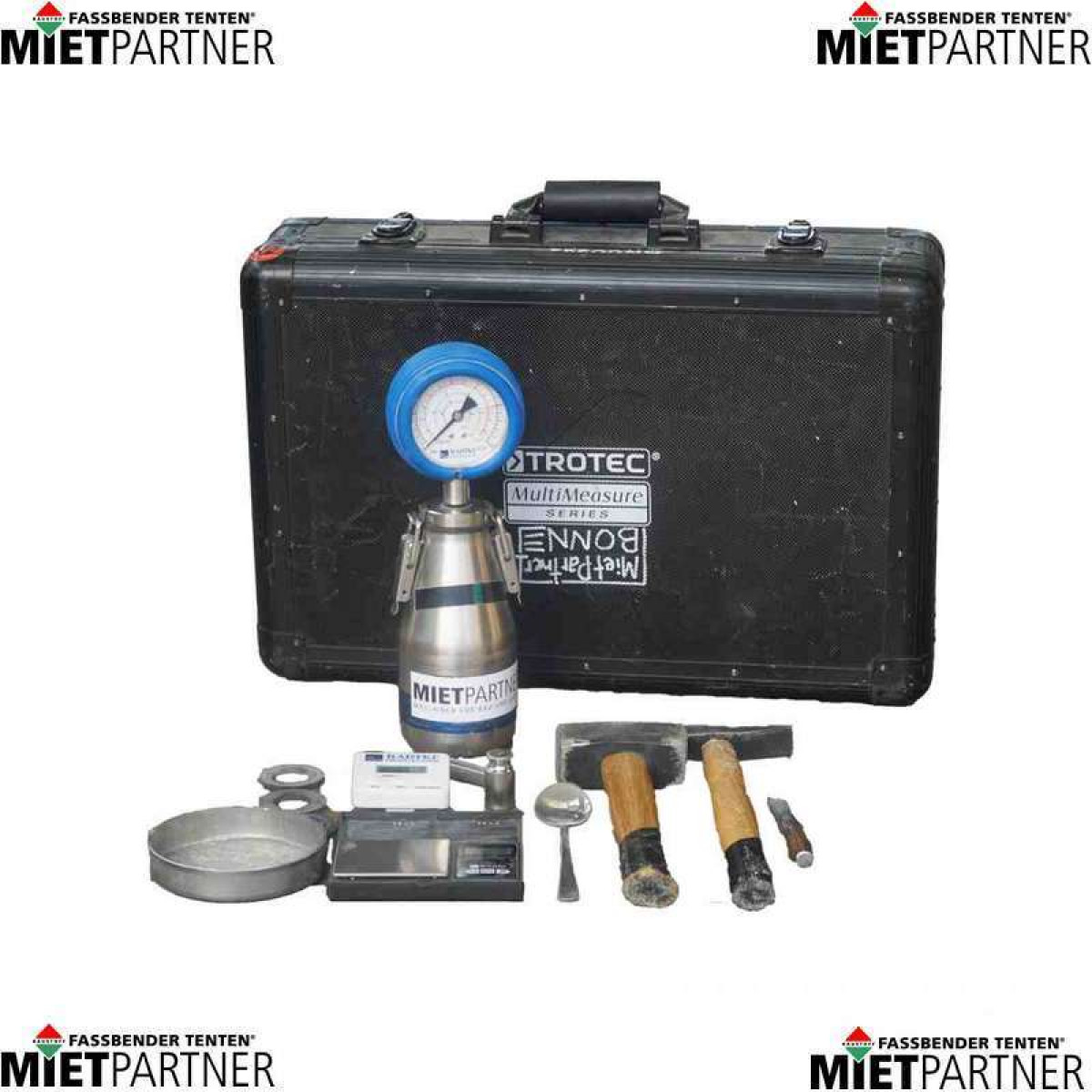 Lästige Feuchteschäden können mit dem CM-Messgerät von Mietpartner genauestens untersucht und auf ihre Feuchte hin überprüft werden. Eine entnommene Probe des Wertstoffes wird in eine Druckflasche gefüllt gemeinsam mit einer Calcium-Carbid-Ampulle. Durch den entstandenen Unterdruck lässt sich an der Skala ihre Restfeuchte ablesen.