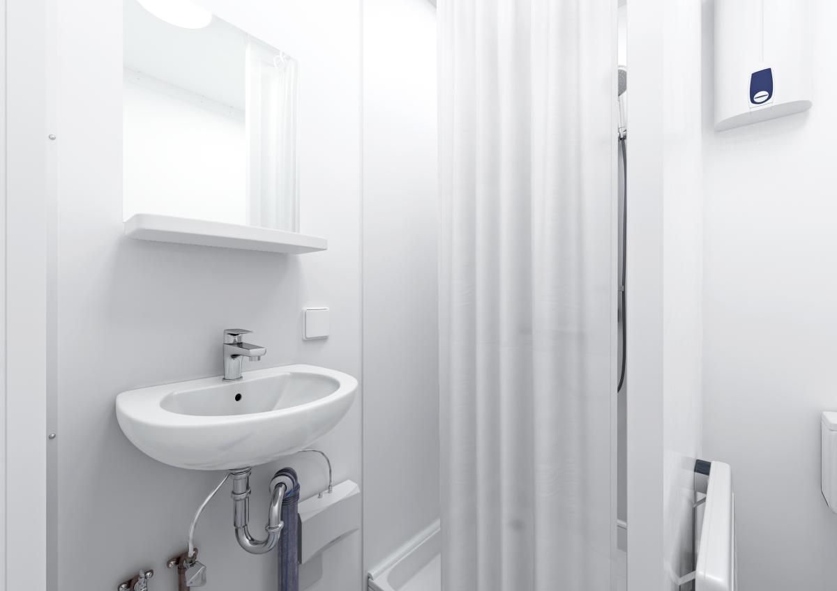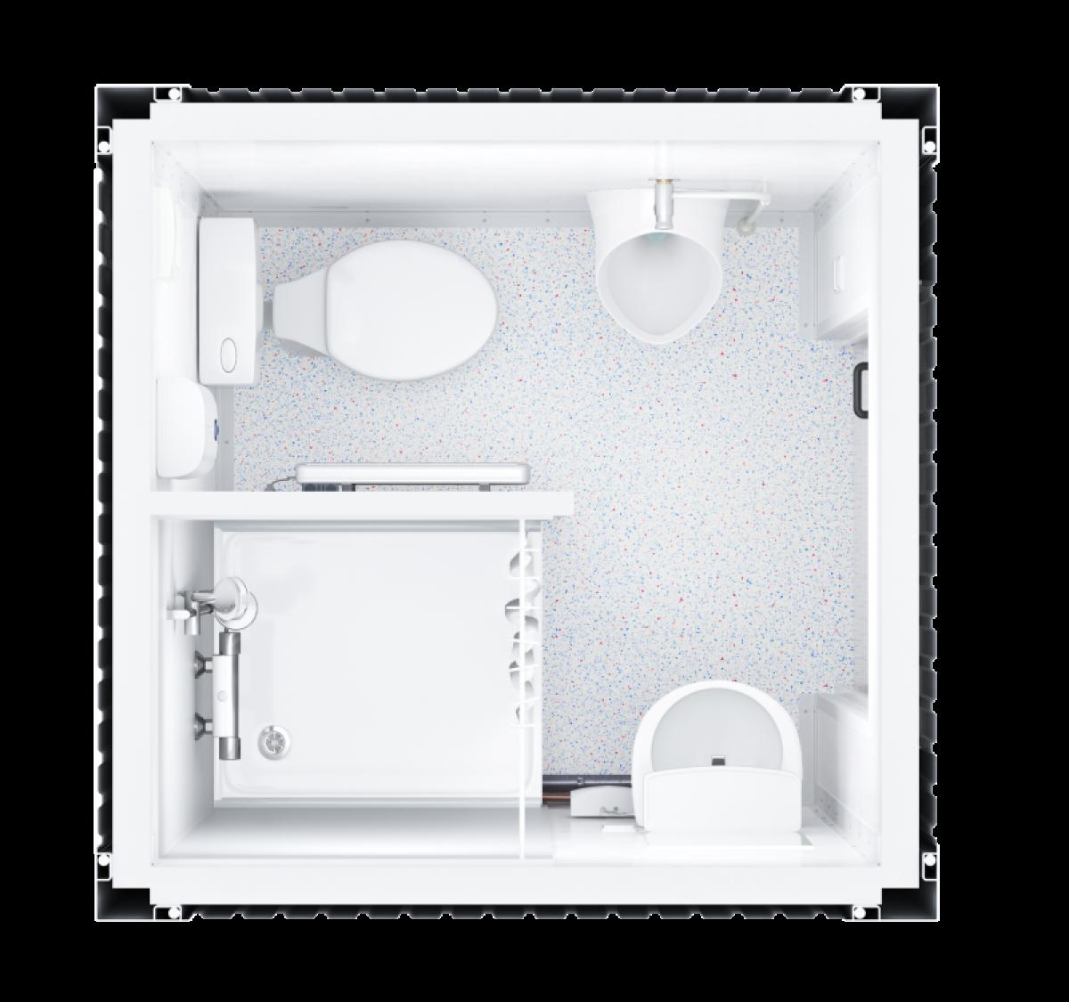 Winzige 3,2 qm reichen aus, um sowohl in Sachen Toilette als auch Körperpflege Maßstäbe zu setzen. Neben einer Dusche stehen ein Waschbecken, eine Toilette und ein Urinal zur Verfügung. Mehr Ausstattung auf so wenig Raum geht nicht. Außerdem helfen unsere Wasserspar-Armaturen, Kosten zu senken und die Umwelt zu schonen.