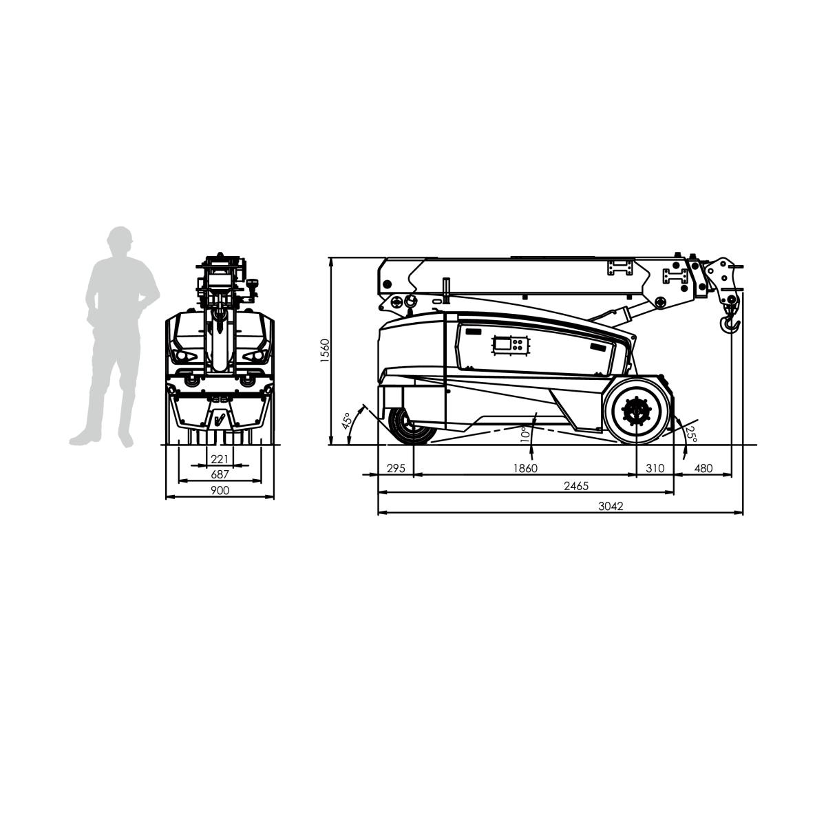 | Arbeitsreichweite seitl. (Arbeitsbühne) | 4.8 Meter |