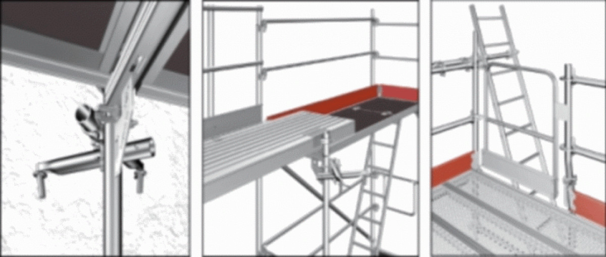 Das Gerüst ist erweiterbar bis zu einer Arbeitshöhe von 13,6 m