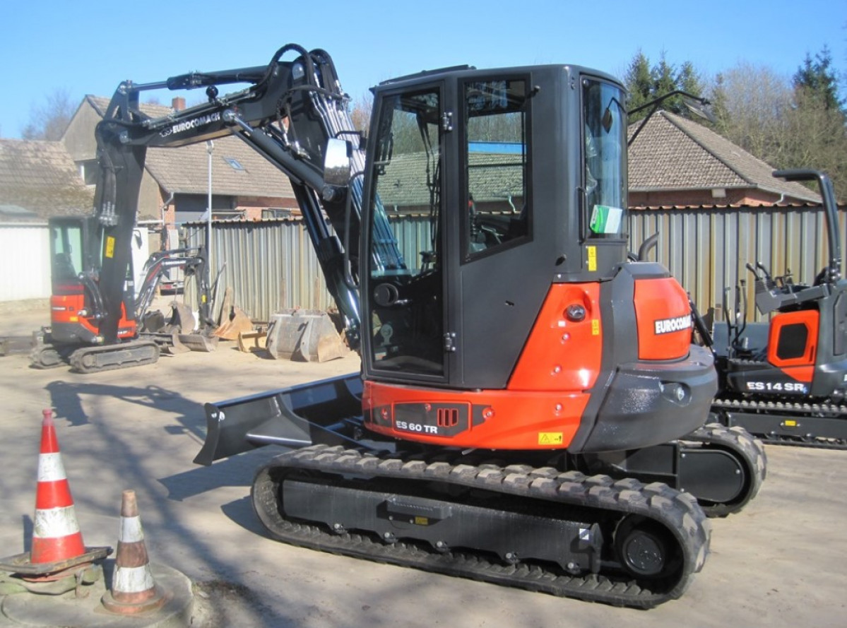 Kurzheckbagger mieten Eurocomach ES 60TR Verstellausleger, Gewicht 6050 kg, Grabtiefe 395 cm, Breite 1980 mm,