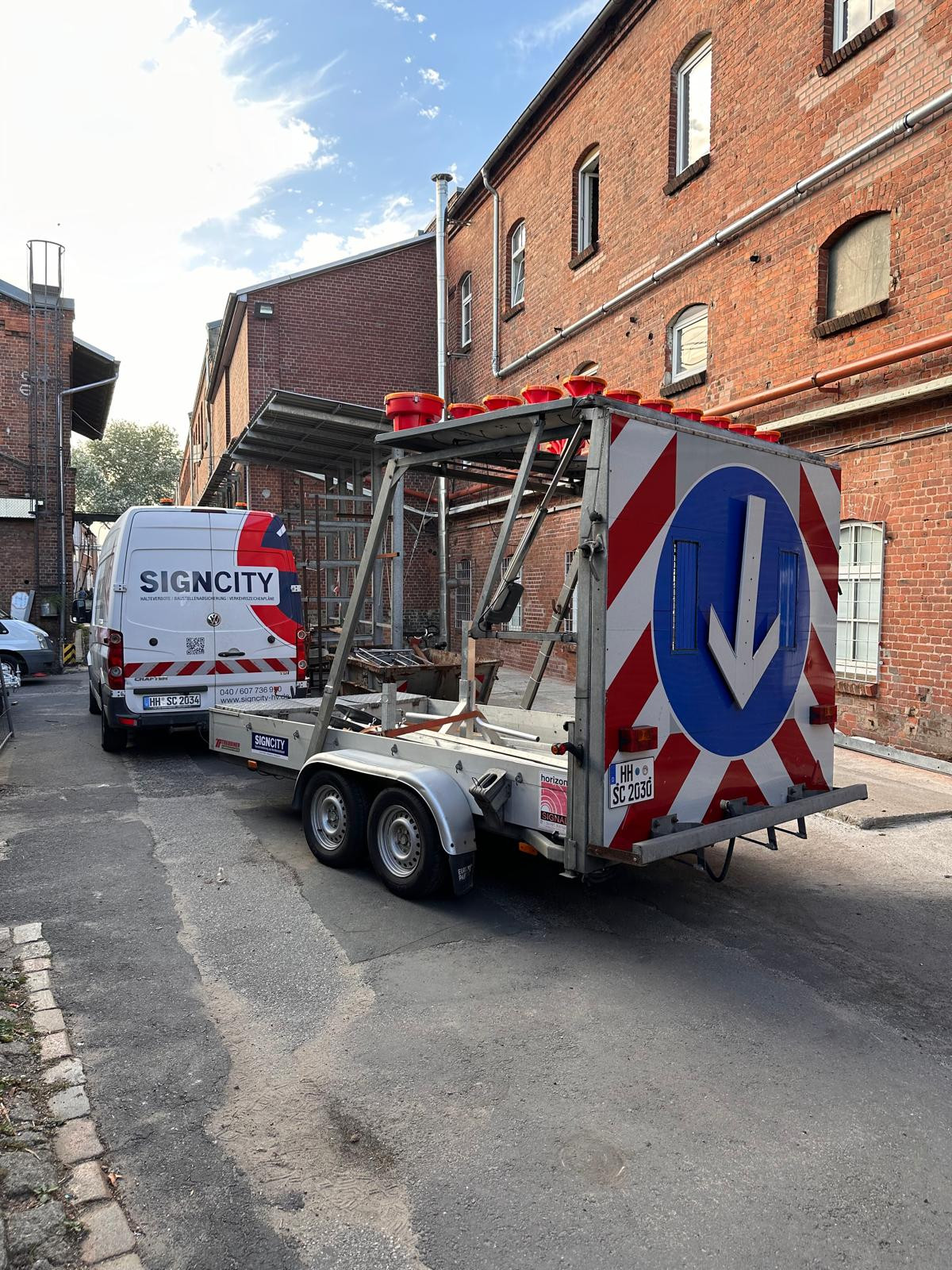 Verkehrssicherungsanhänger Horizont Fahbare Absperrtafel (Schildhöhe 3.600mm) mit Blinkpfeil Verkehrsleitanhänger