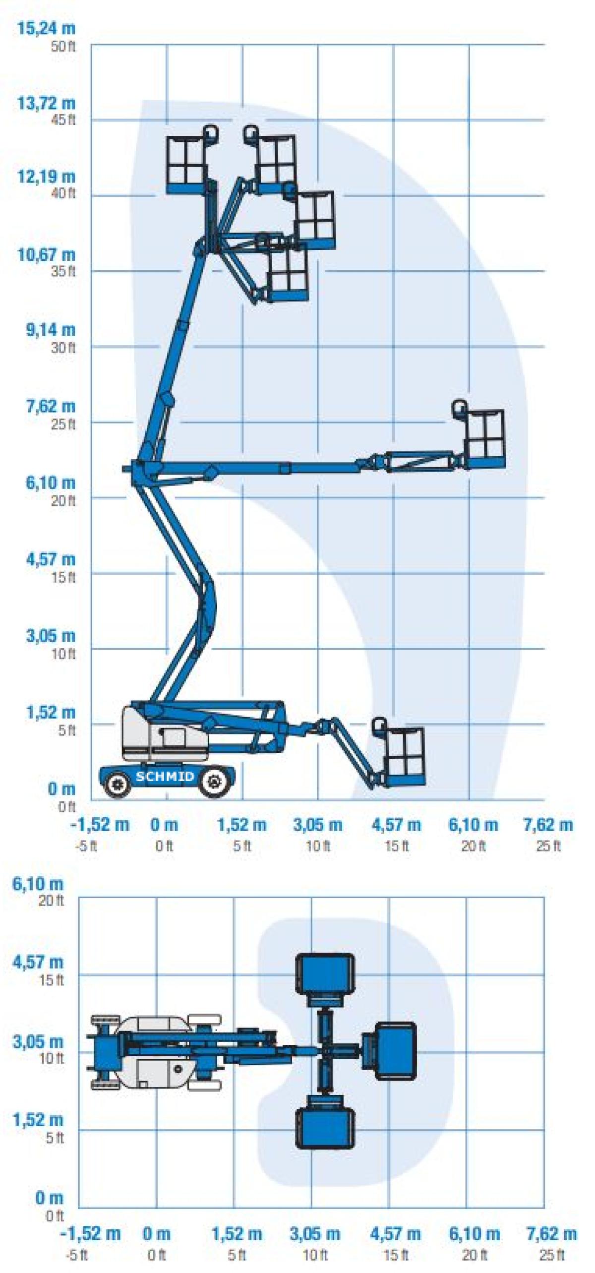 | Arbeitsreichweite seitl. (Arbeitsbühne) | 6.91 Meter |