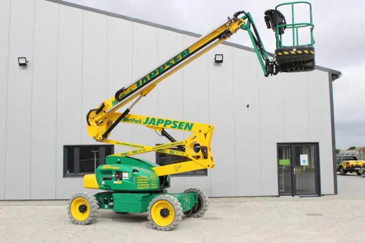 Gelenkteleskop-Arbeitsbühne Nifty Lift HR 21 4x4 (Allrad) Hybrid Arbeitshöhe: 20.8m Korblast: 250kg Reichweite: 13m Antriebsart: Hybrid, Gewicht 6640 kg.