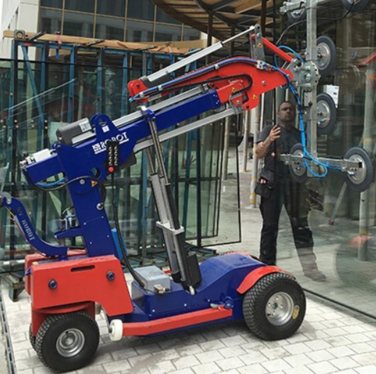 Glaslifter KS Robot 600 outdoor Glasroboter, Gewicht 770 kg, max. Tragkraft 600 kg, Arbeitshöhe 3,5 m Ausladung 1,2 m, breite 920 mm, batteriebetrieben, dank seiner speziellen Reifen fühlt sich der Robot sowohl im Innenbereich als auch im Außenbereich mit rauem Gelände wohl.