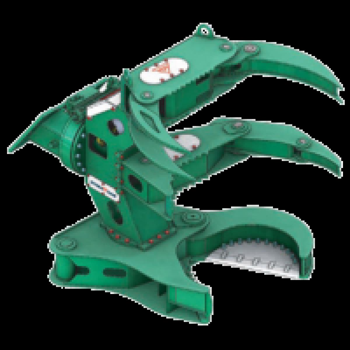 DIe Hydraram Baumschere schneidet Baumstämme und Äste kontrolliert und ermöglicht das sichere Ablegen der Stämme. Hierfür fixieren Greifarme den Stamm während des Schneidvorgangs.