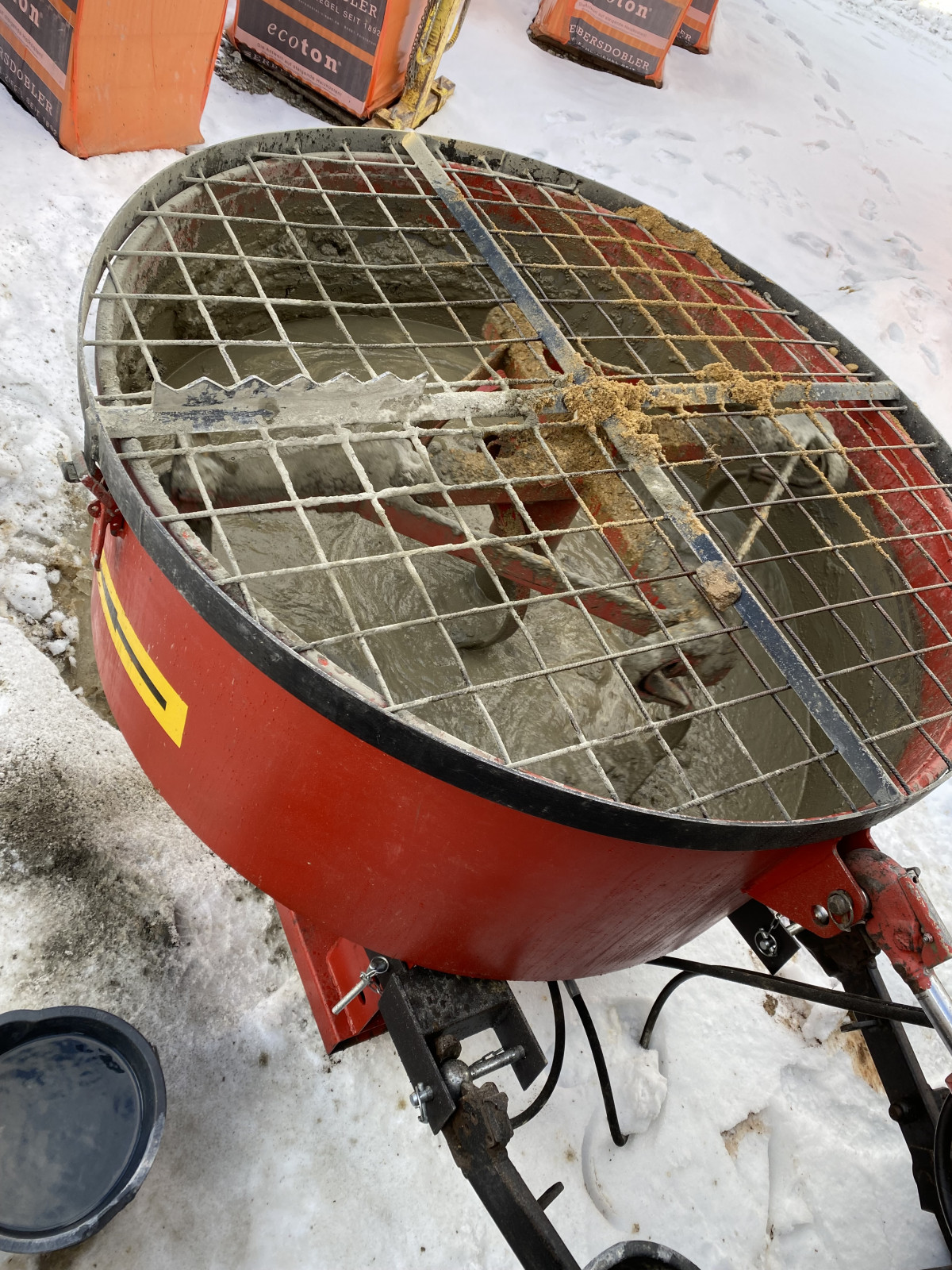 Beton Zwangsmischer, der Vorteil von diesem Hydraulischen Zwangsmischer ist, dass er nicht nur an einem Traktor funktioniert sondern auch bei einem Lader,Bagger praktisch überall wo Hydraulik anzuschließen ist. Die Mischgeschwindigkeit hängt von der Hydraulikpumpe des angeschlossenen Fahrzeug ab.