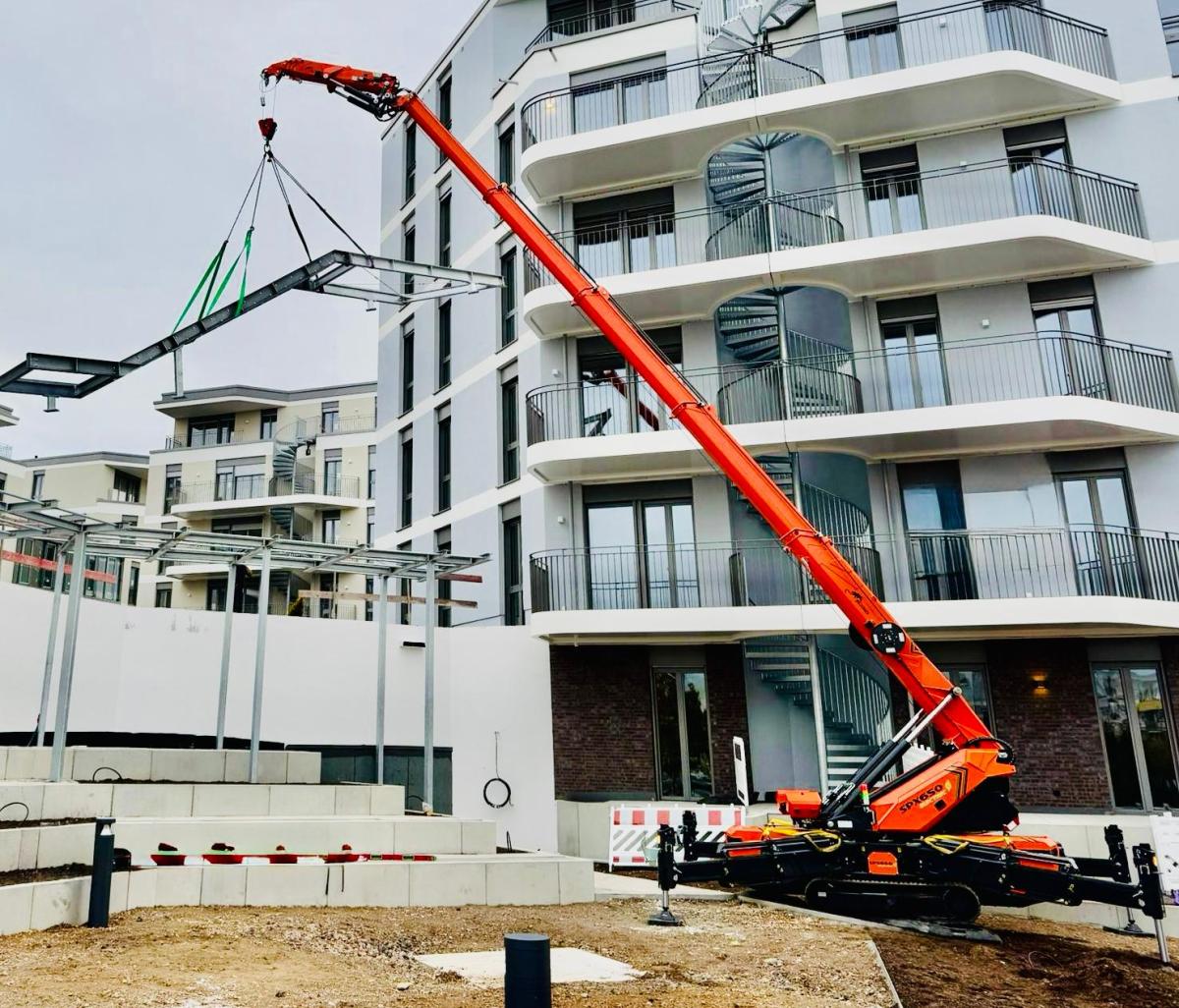 - Kompaktheit: Mit einer Breite von nur 980 mm passt der Kran durch Standardtüren und in Aufzüge, was den Einsatz in Innenräumen und beengten Baustellen ermöglicht.