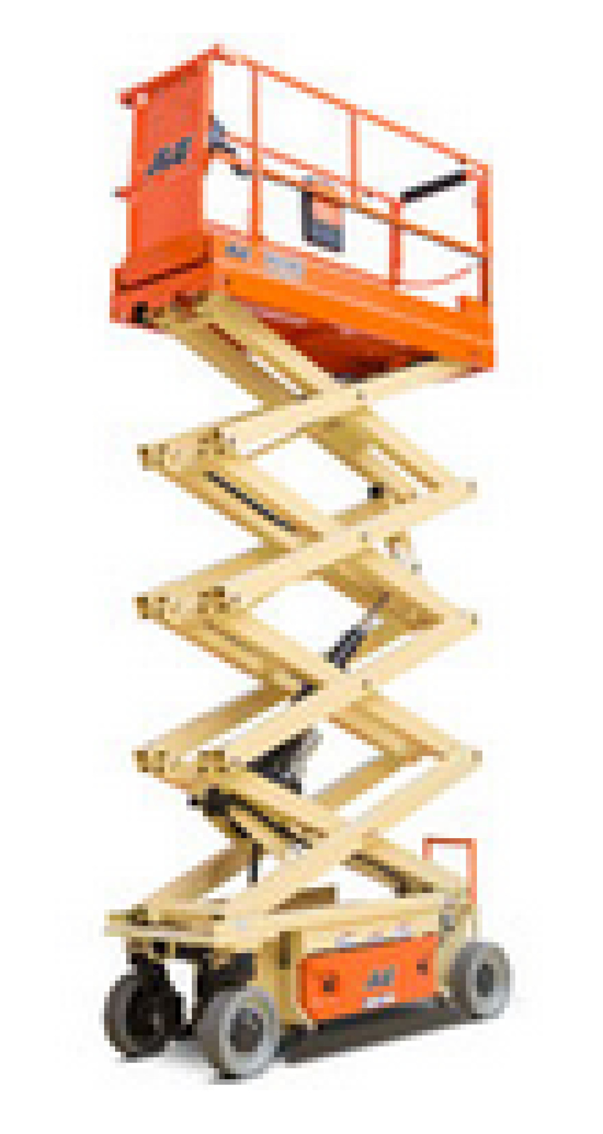 JLG 2632 ES Elektro Scherenbühne, Gewicht 2135 kg, Arbeitshöhe 9,75m, Plattform- Höhe 7,77 m,Transport- Höhe 1,94 m Transportbreite 760 mm, Länge 2,30 m, Korblast 230 kg.