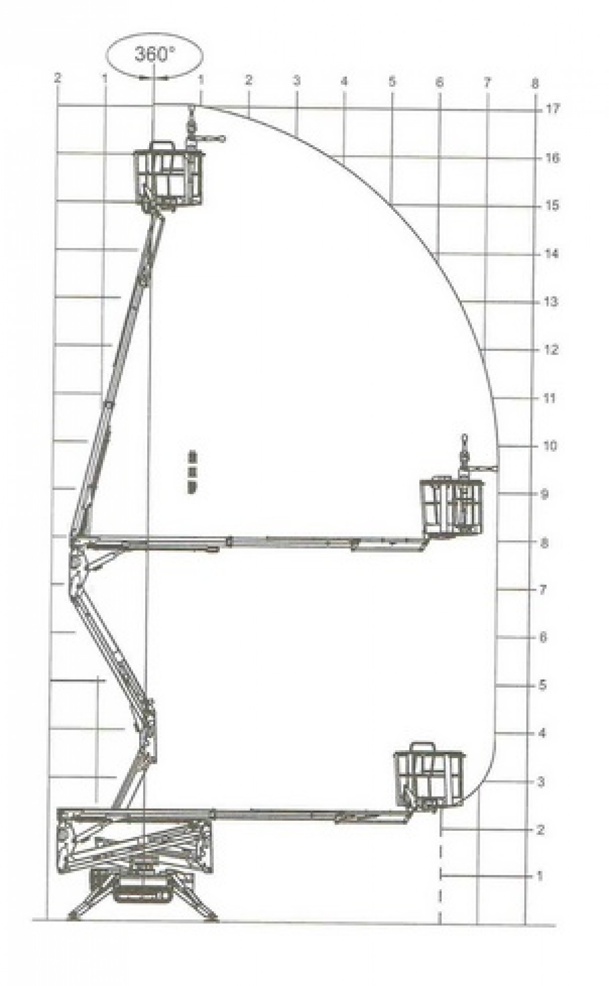 3.000 kg auf Transportanhänger 17,06 m Arbeitshöhe bei 230 kg Korblast 14,96 m Plattformhöhe bei 230 kg Korblast 7,50 m seitliche Reichweite bei 230 kg Korblast2,00 m Gesamthöhe