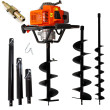 Profi Gerät extrastarker 3,8PS 63ccm Benzin Erdlochbohrer Set 7 teilig inklusive 3 Bohrer 3 Verlängerungen und Schockabsorber