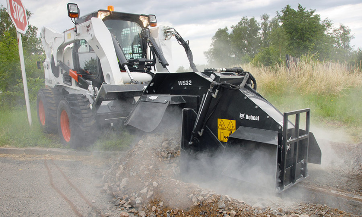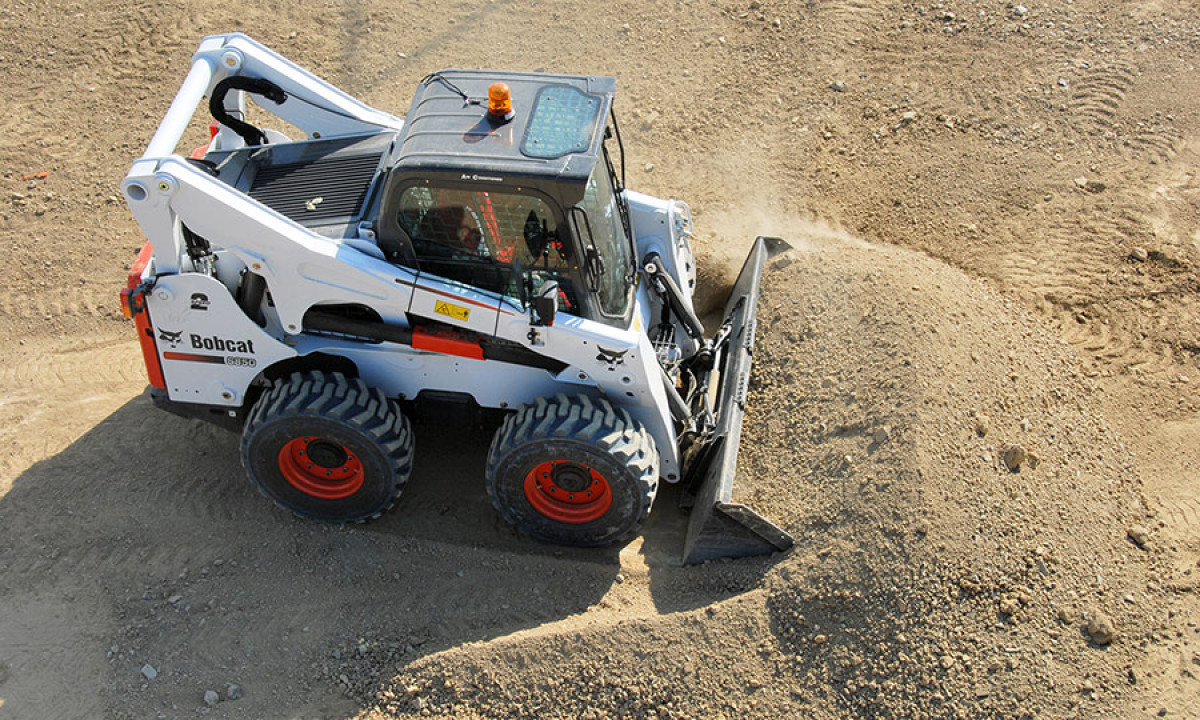Kompaklader mieten Bobcat S850 mit Ladeschaufel, auf Wunsch verfügbar Hydraulikhammer, Palettengabeln, Erdbohrgerät, diverse Fräsen (Beton,