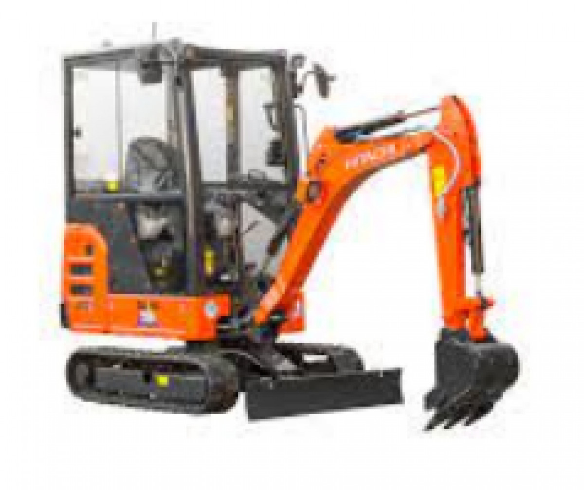 Kompaktbagger Hitachi 1,9 t ZX19-6CR, Gewicht 1920 kg max. Grabtiefe 2,30 m, Höhe 2,40 m Breite 1,28 m, mit Powertilt (mech. Wechsler) Schwenkwinkel 2 x 90 Grad