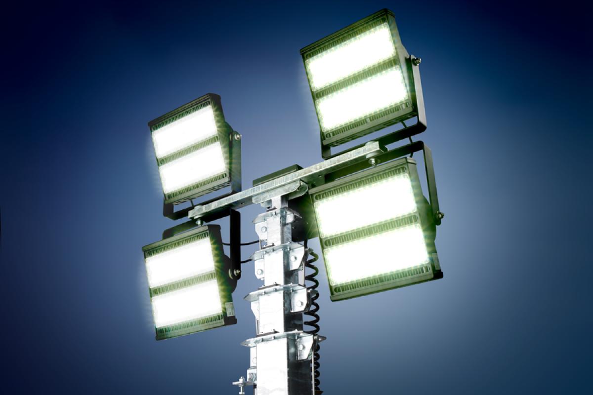 Lichtmast mobil LED-Beleuchtung, Gewicht 730 kg, Masthöhe 7,80 m, Diesel-Motor 6,1 KW
