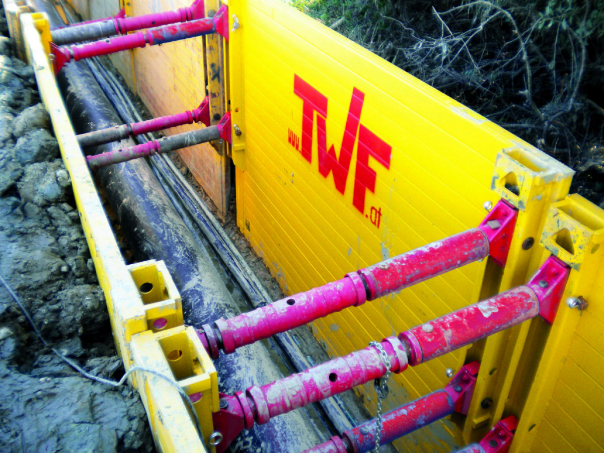 Grabenbreite 2,23 m, Erddruck 107 kN/m²
