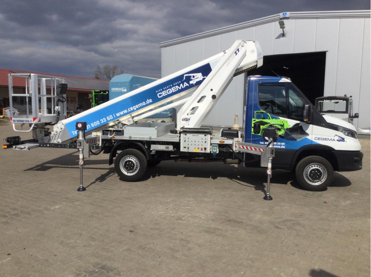 LKW Arbeitsbühne Palfinger MTE 270 EX, Ges-Gew. 3490 kg, Arbeitshöhe 27 m, Arbeitsreichweite seitl. 17 m.
