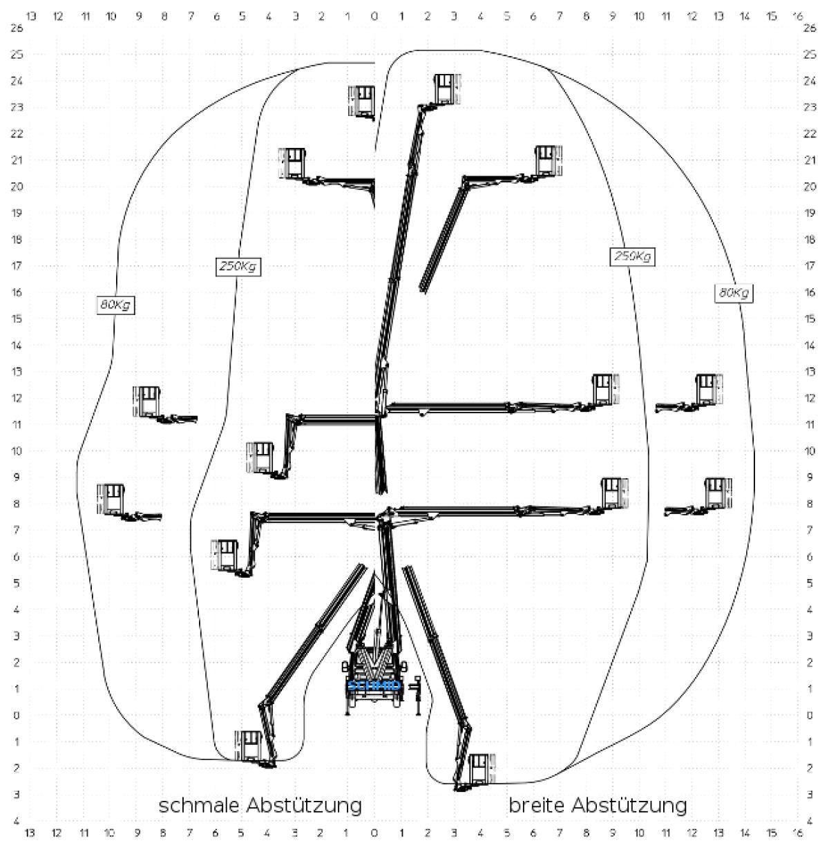 | Arbeitsreichweite seitl. (Arbeitsbühne) | 14.35 Meter |