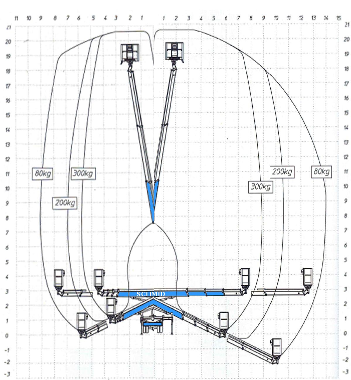 | Arbeitsreichweite seitl. (Arbeitsbühne) | 14 Meter |