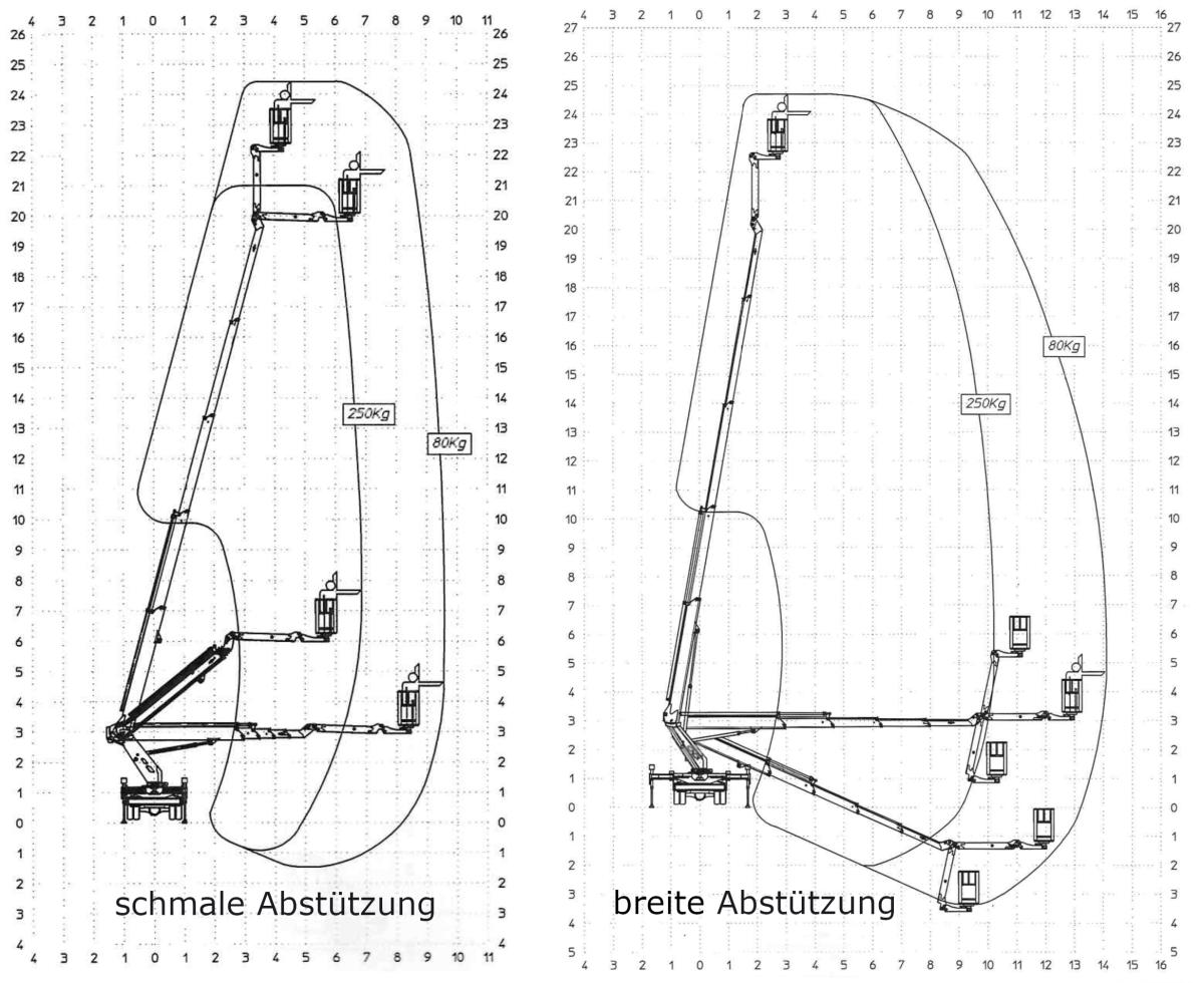 | Arbeitsreichweite seitl. (Arbeitsbühne) | 13.7 Meter |