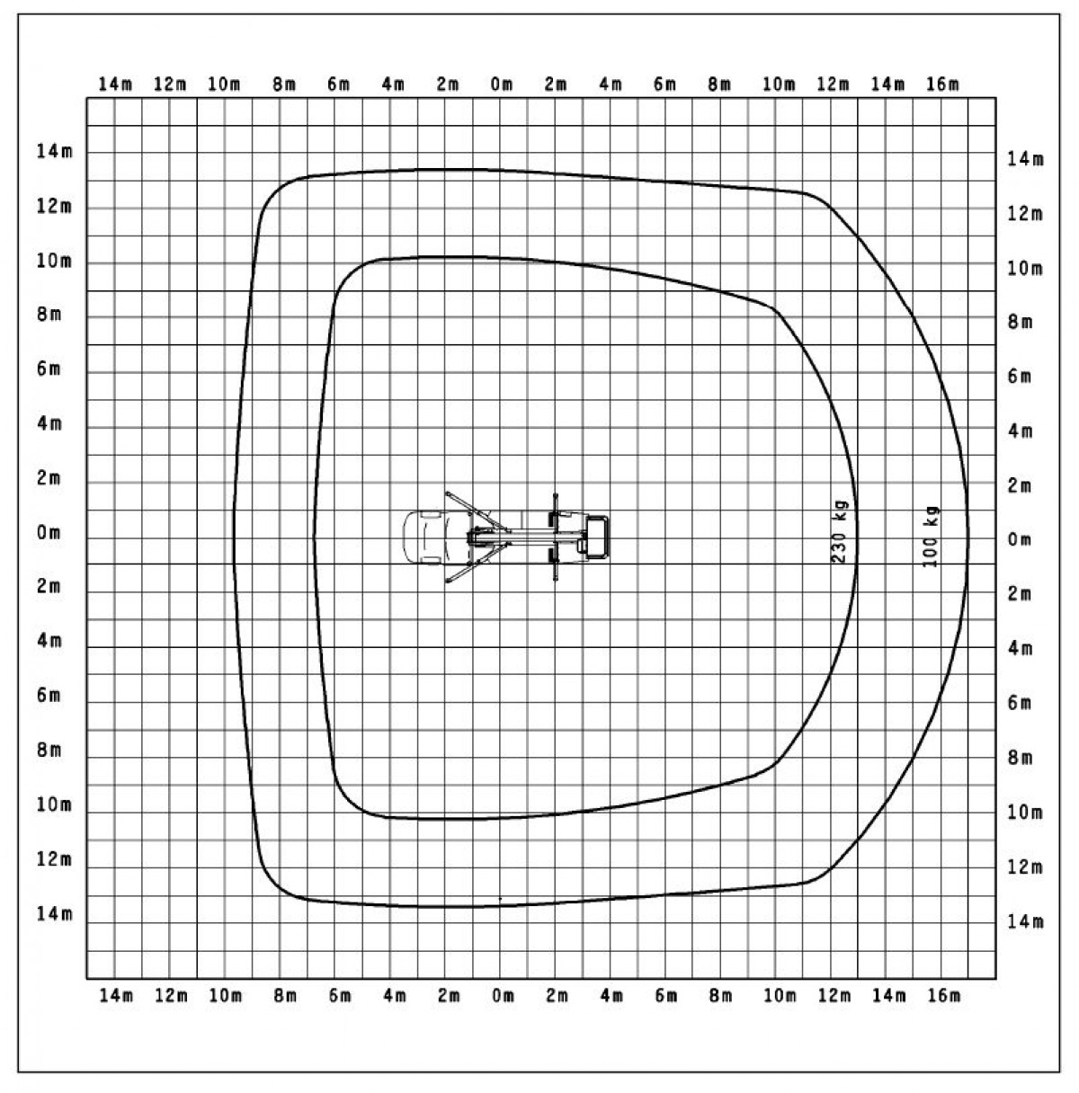 | Seitliche Reichweite | ca. 16 m lastabhängig |