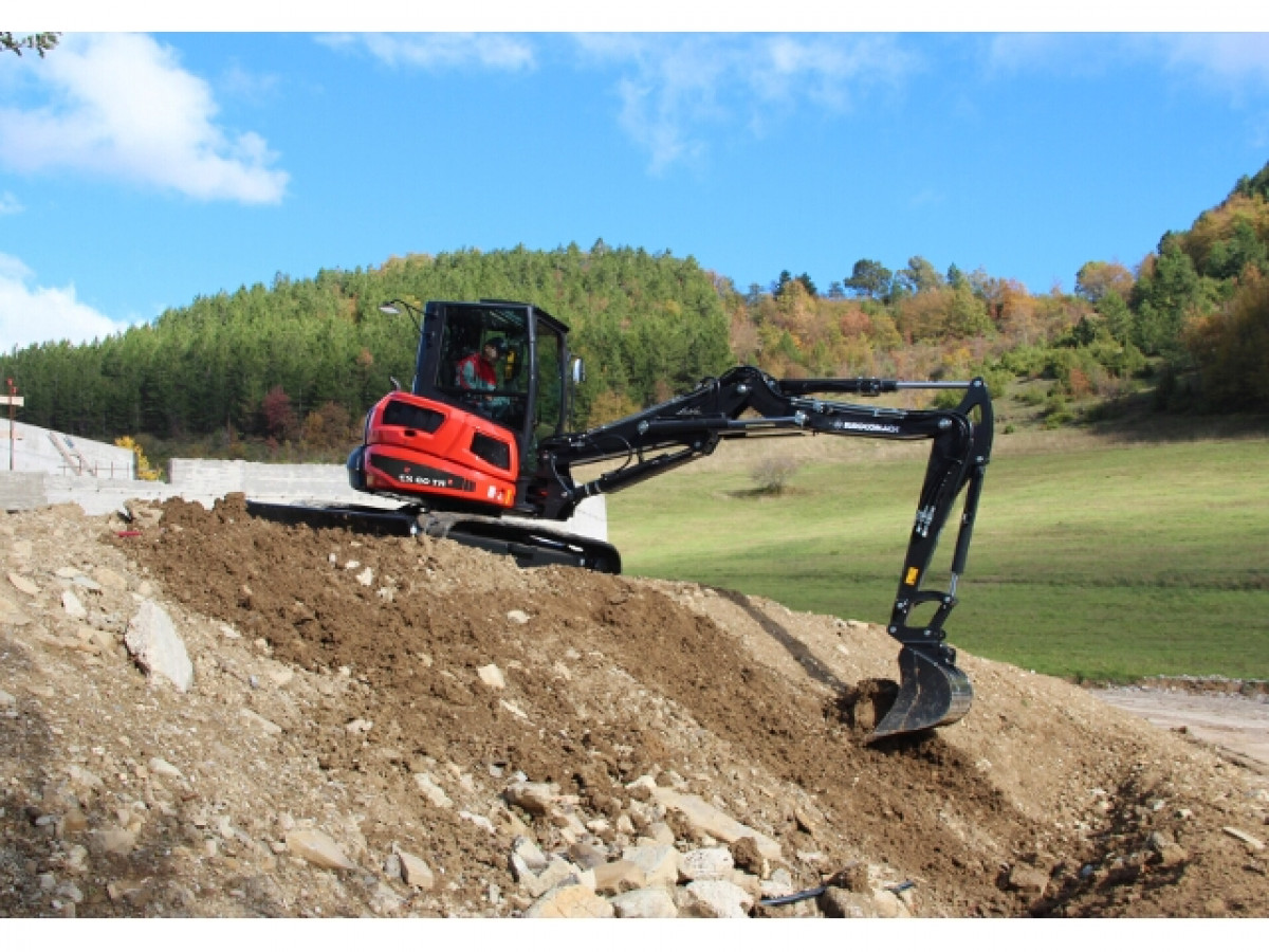 Verfügbare Anbauteile: Tieflöffel und Grabenräumschaufel hydr. schwenkbar, Zweischalengreifer und Abbruchhammer