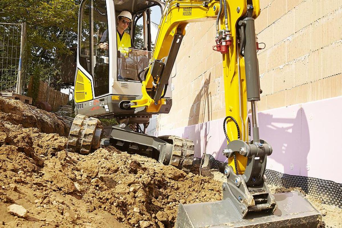 Minibagger Wacker Neuson ET 24, Gewicht 2306 kg, Grabtiefe 260 cm, Breite 1400 mm.