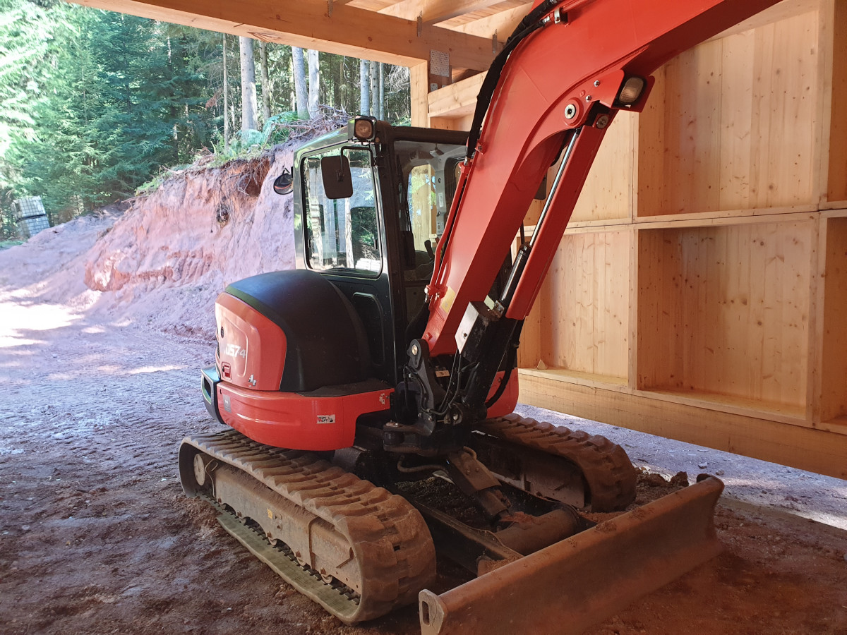 Hier wird ein Minibagger zum Mieten angeboten. Dabei handelt es sich um einen Kubota kx 57-3 mit 5,7 Tonnen Dienstgewicht.