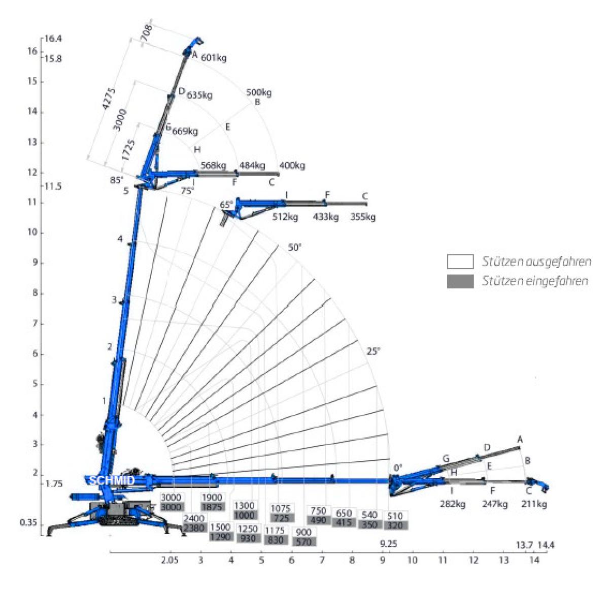 | Ausladung (Kran) | 14.5 Meter |