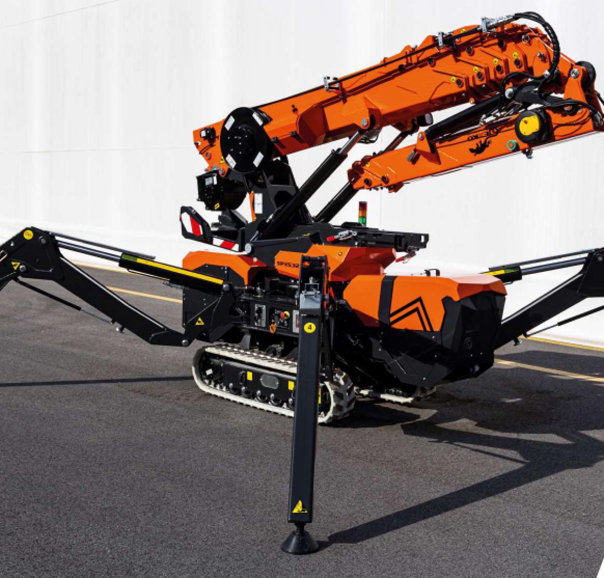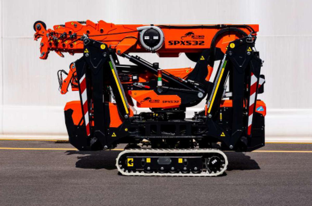 Minikran Jekko SPX 532 Raupenkran, Gewicht 2350 kg, Tragkraft max. 3200 kg, Arbeitshöhe 17,3 m, Ausladung 14,8 m, Breite 770 mm.