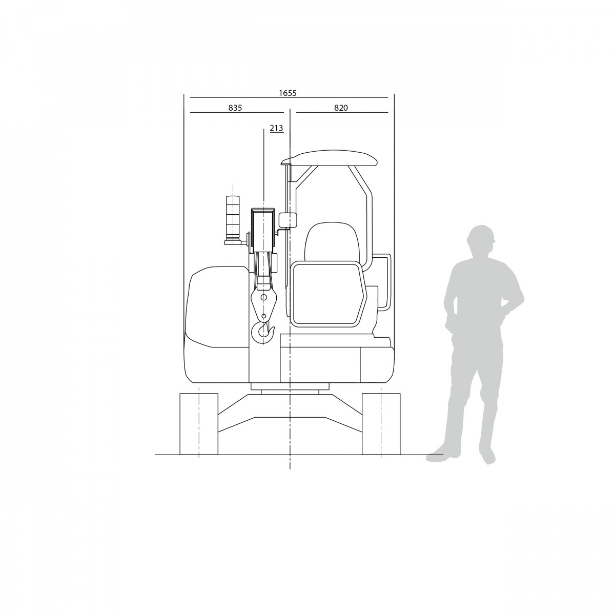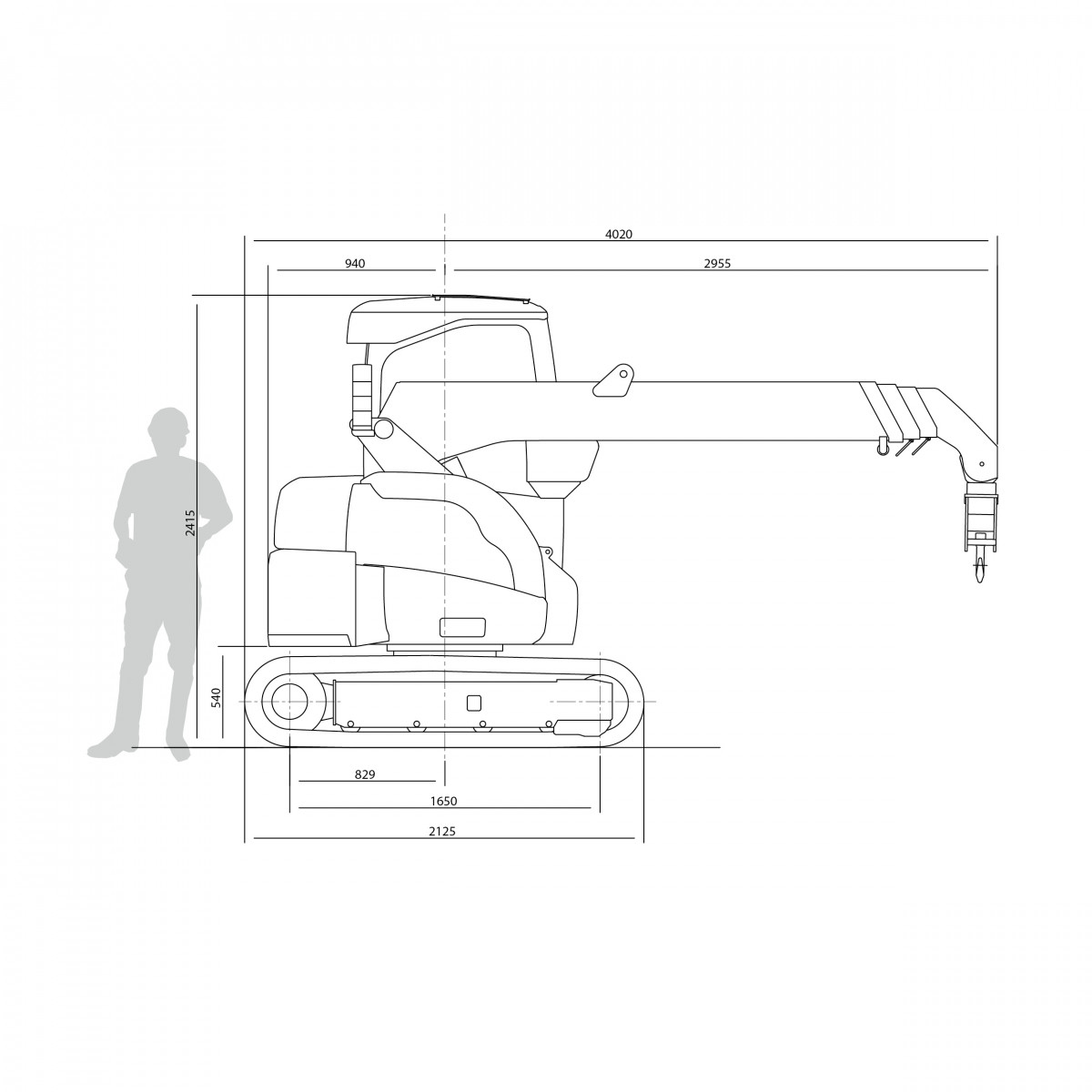Mit diesem fahrbaren Minikran mit einem Gesamtgewicht von nur 4.400 kg können Lasten zum Beispiel direkt von einem Lkw aufgenommen, zum Einsatzort gefahren und dort gleich verkrant werden. Das spart natürlich extrem viel Zeit. Die Durchfahrtsbreite von nur 1,70 m (Maschinenbreite 1,66 m) ermöglicht diesem Raupenkran das Arbeiten auf Baustellen mit schmalen Zugängen, wie enge Einfahrten und Hoftore. Bei einer Höhe von 9,46 m kann der CC423 maximal 1,5 t heben und bei einem maximalen Radius von 8,38 m noch 200 kg. Das Hauptmerkmal des CC423 ist die Pick & Carry Funktion, welche das Verfahren von Lasten mit bis zu 1.465 kg gewährleistet. Ein weiteres Feature ist die teilgeschlossene Fahrerkabine – für noch mehr Komfort.