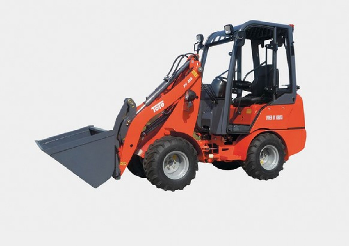 Minilader mieten Toyo 826, Hoflader mit Erdschaufel 1,10m/0,2m³ und Palettengabel, Eigengewicht 1,68to, Hubhöhe 2,90m, Hubkraft 1,0to, Geschwindigkeit 14km/h, Gesamtlänge mit Schaufel 3,78m, Gesamtbreite 1,10m, Gesamthöhe 2,18m