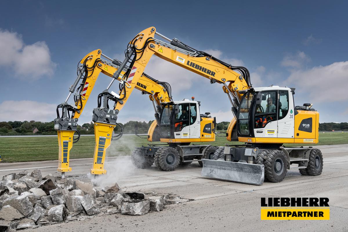 Mobilbagger Liebherr A918 Compact Litronic Gewicht 18.100 kg Grabtiefe 570 cm Breite 2.550 mm Schnellwechsler SW48 LIKUFIX sämtliche Anbauwerkzeuge zur Verfügung
