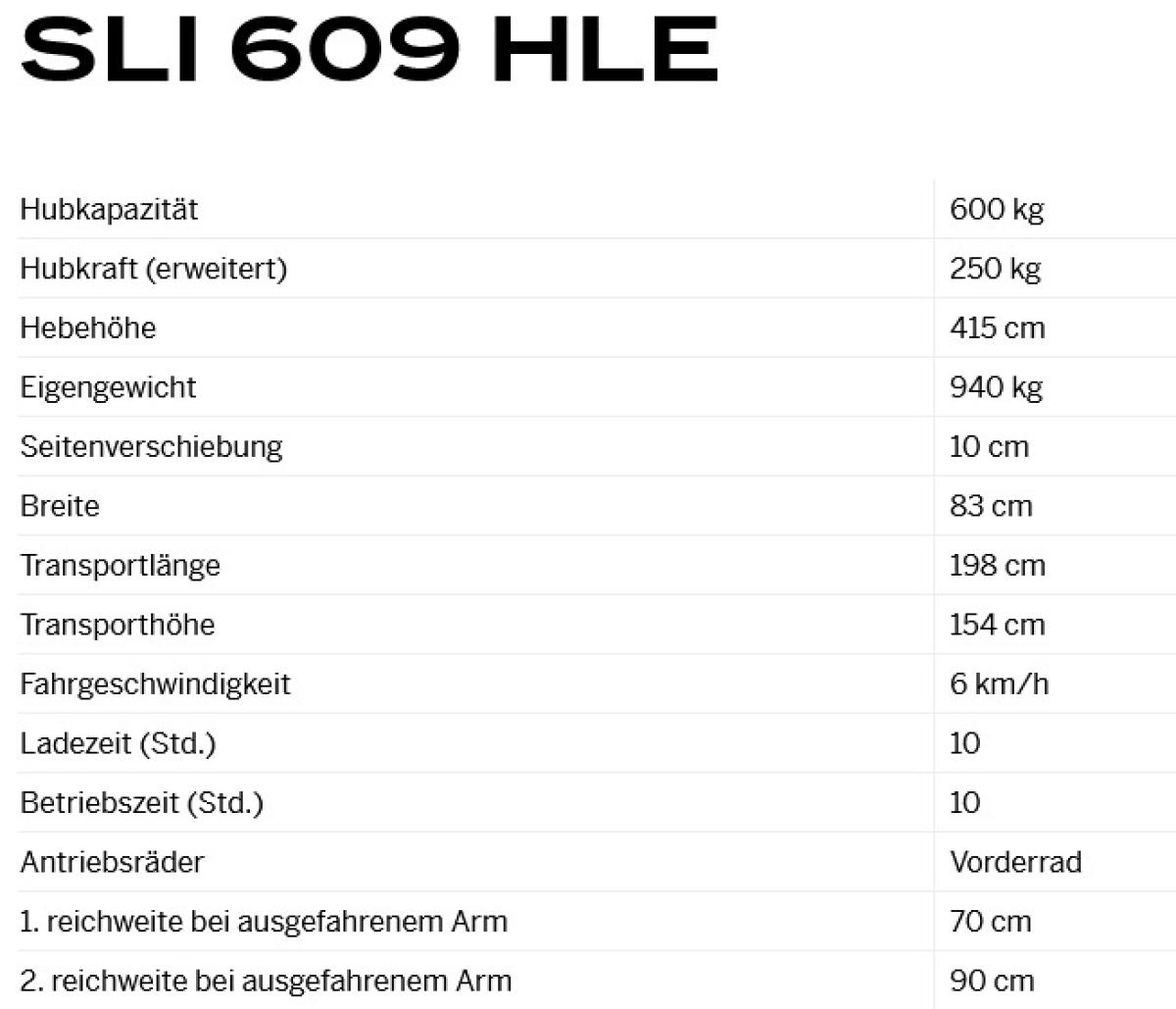 | Modell | SLI 609 HLE |