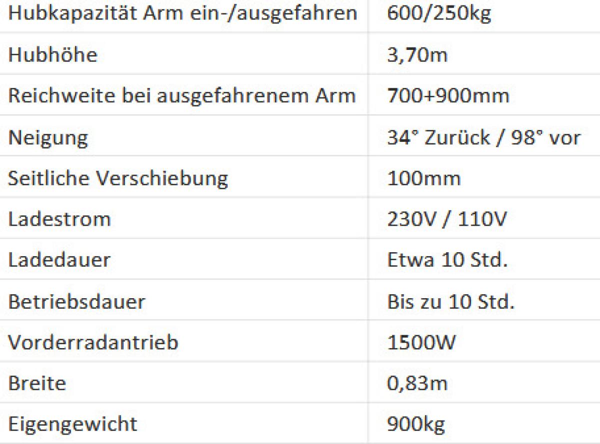 | Arbeitshöhe | 3.7 Meter |
