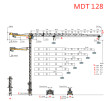 Potain MDT 128 Turmdrehkran Obendreher, Arbeitshöhe auf Anfrage, Ausladung bis 55 m, Tragkraft max 6.000 kg, Tragkraft Spitze 1.600 kg.